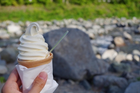 而在現實中的道之驛,這款霜淇淋同樣是招牌人氣商品。由併設的豆腐工坊「螢」手工製作,選用在地大豆與清澈水源製成的豆腐霜淇淋,口感細緻滑順,甜味高雅不膩。