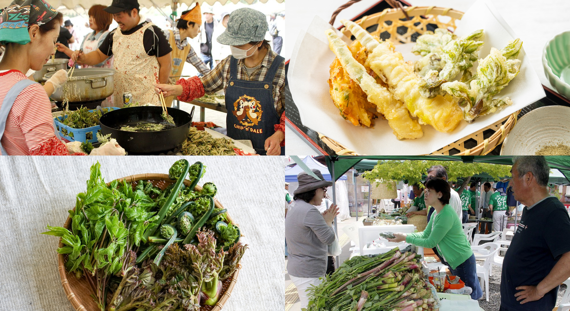 擁有逾四十年歷史的春季傳統盛會,現場陳列來自南阿爾卑斯群山、當日新鮮採摘的山菜,如獨活、楤木芽等,滿溢春意。